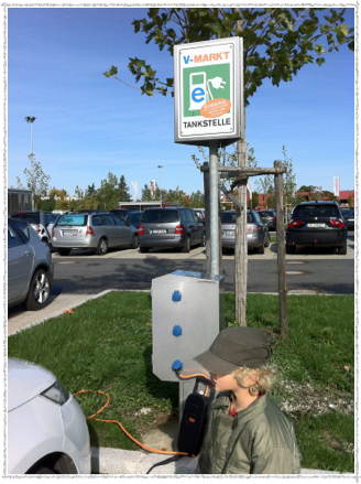 Endlich gibt es die erste Ladestation in München die für mich sinnvoll ist. Am V-Markt (ein lokaler Supermarkt) im Euro Industrie Park gibt es jetzt 3 grün markierte Parkplätze mit kostenlosen Steckdosen - sehr praktisch. Die Ladesäule bietet eine Mode2-Buchse sowie 3 Schucko-Steckdosen, aber KEINE RFID, SMARTCARD oder sonst irgendwas das üblicherweise dafür sorgt einem Elektrofahrer das Leben schwer zu machen. Dafür ist die Säule brav im Lemnet eingetragen.