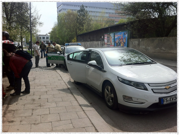 Waren wir ob des fehlenden Motorengeräusch zu schnell unterwegs gewesen oder ist uns die fehlende „Feinstaubplakette“ (ich weigere mich diesen Mist in den Volt zu kleben) zum Verhängnis geworden?