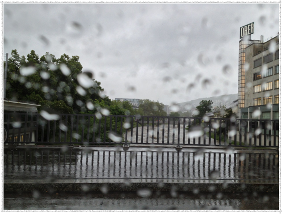 Der Volt erlaubt sich einen bösen Scherz mit uns. „Störungen auf der Strecke“ lügt und das Navi an (oder auch nicht, wir können es ja nicht überprüfen) und schickt uns direkt durch das Zentrum von Zürich. Tolle Stadt. Wir lernen auch noch eine spezielle schweizer form des Regens kennen: