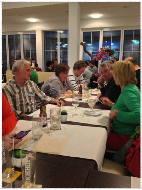 Aber jetzt ab in das Restaurant! Dort treffen wir zuerst Joe, der den Event organsiert hat. Mit Namenschildern ausgestattet begrüssen wir die Teilnehmner. Der Versuch, Speiss und Trank zu bestellen gelingt und so versinken wir schon bald im Fachsimpeln.